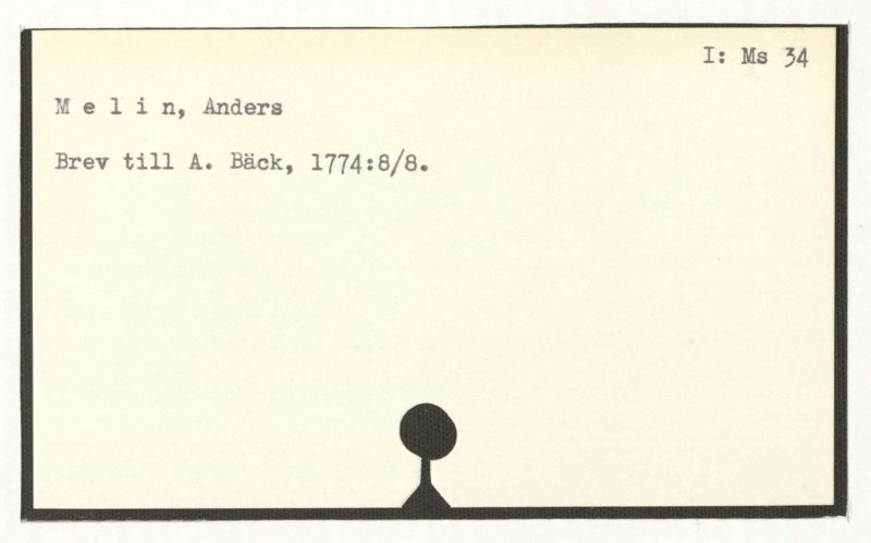 Brev till A. Bäck, 1774:8/8.