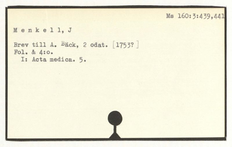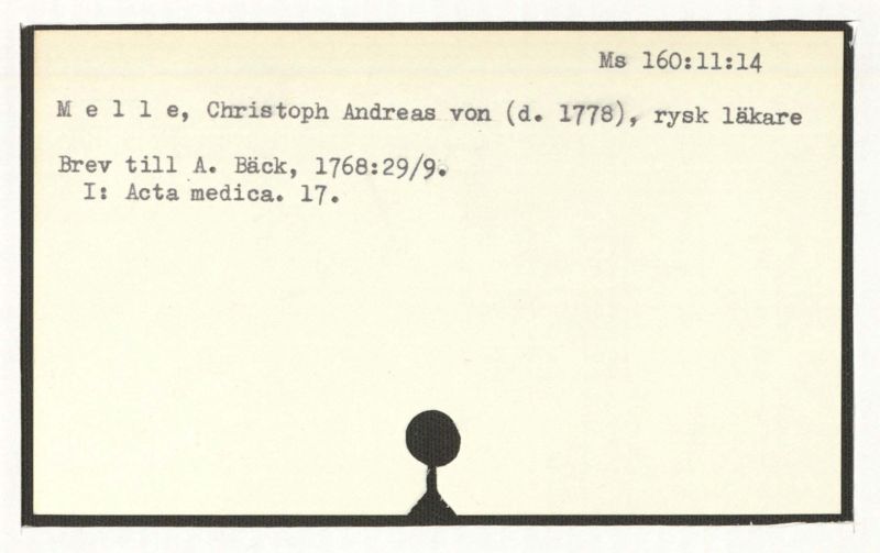 Se: Nordman,J., Brev till Bäck, 1767.