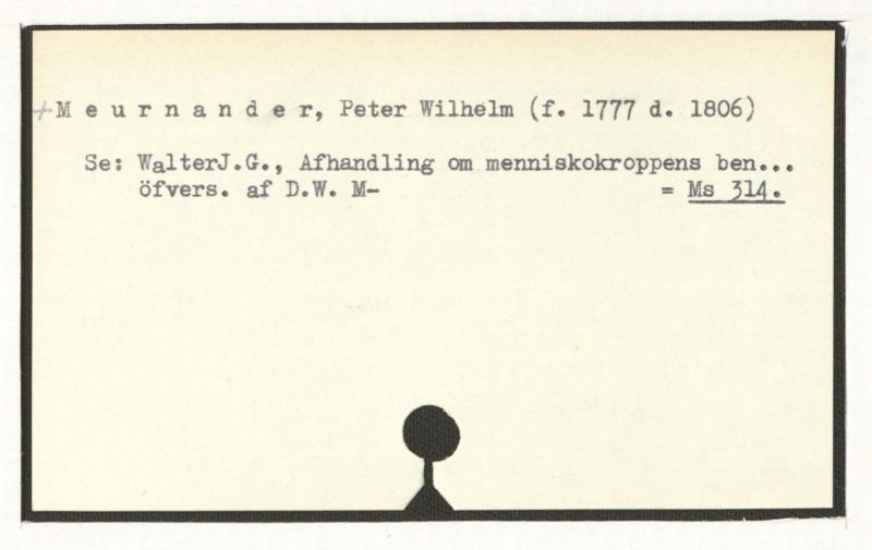 Se: WalterJ.G., Afhandeling om meniskokroppens ben...öfvers. af D.W. M= Ms 314.