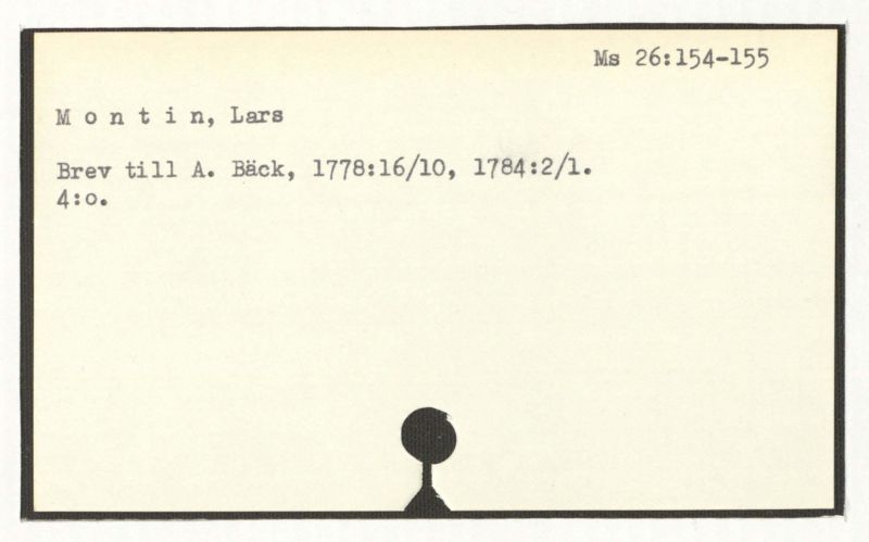 Brev till A. Bäck, 1778:16/10, 1784:2/1.