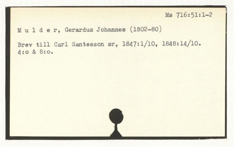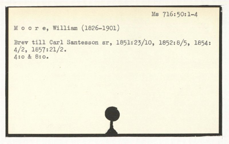 Brev till Carl Santesson sr, 1851:23/10, 1852:8/5, 1854: 4/2, 1857:21/2.