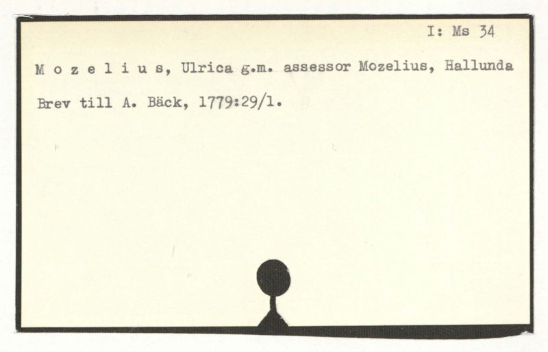 Brev till A. Bäck, 1779:29/1.