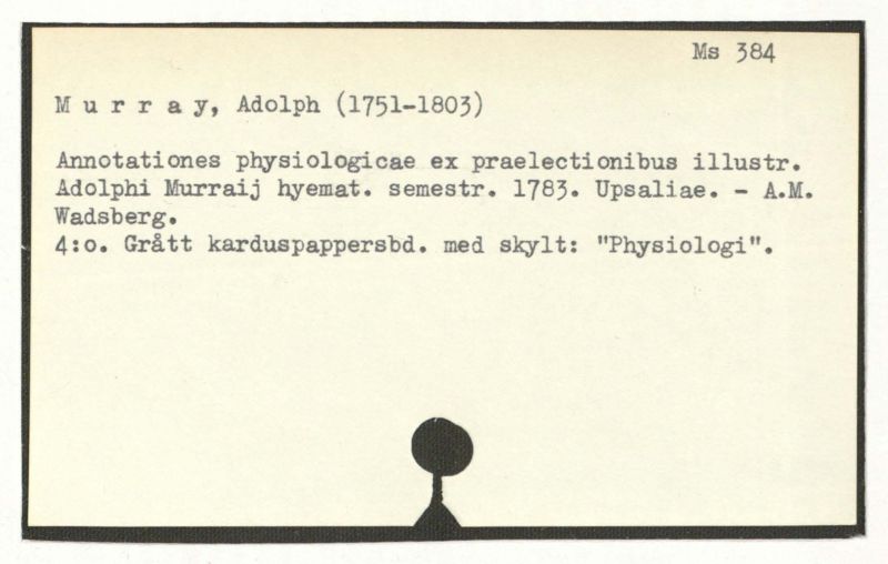 Adolphi Murrailj hyemat. semestr. 1783. Upsaliae. – A.M.