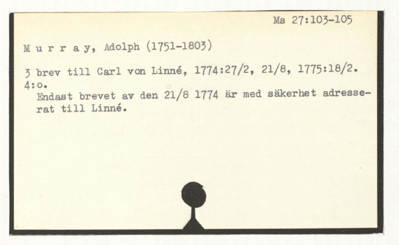 3 brev till Carl von Linné, 1774:27/2, 21/8, 1775:18/2. 4:0.