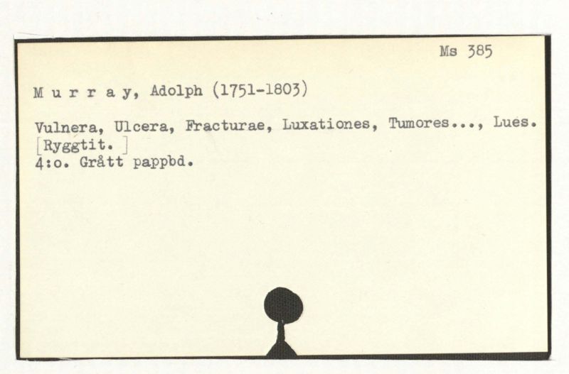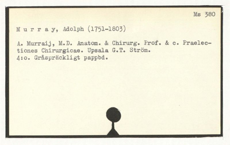 A. Murraij, M.D. Anatom. & Chirurg. Prof. & c. Praelectiones Chirurgicae. Upsala G.T. Ström.