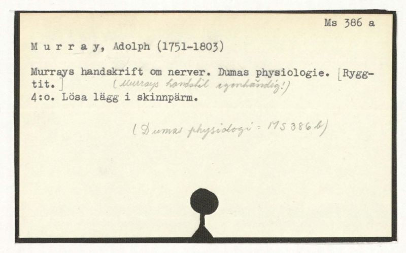 Murrays handskrift om nerver. Dumas physiologie. [Ryggtit.]
