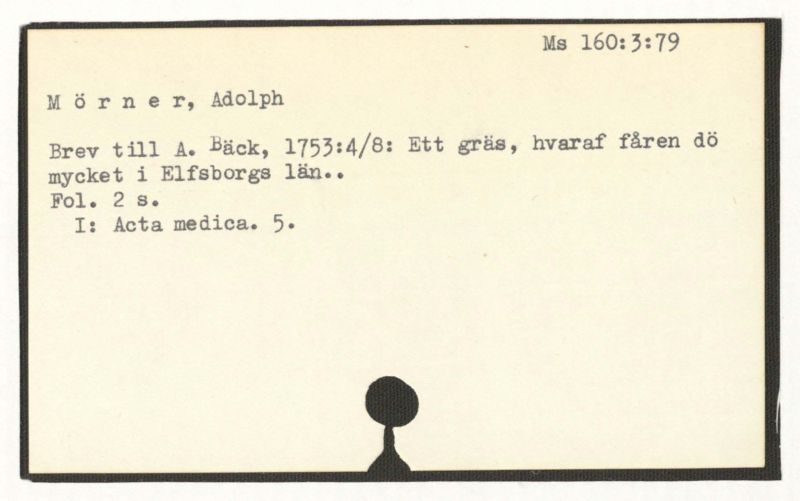 Brev till A. Bäck, 1753:4/8: Ett gräs, hvaraf fåren dö mycket i Elvesborgs län..