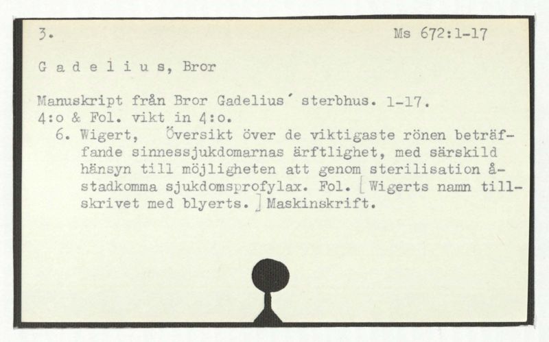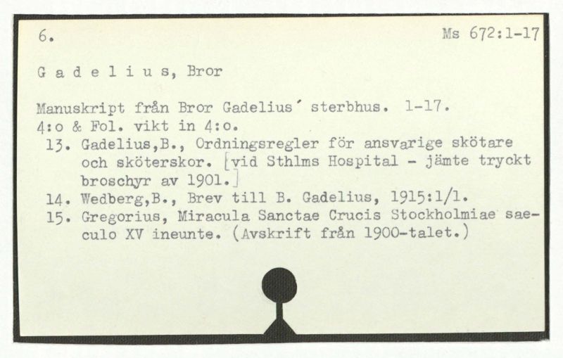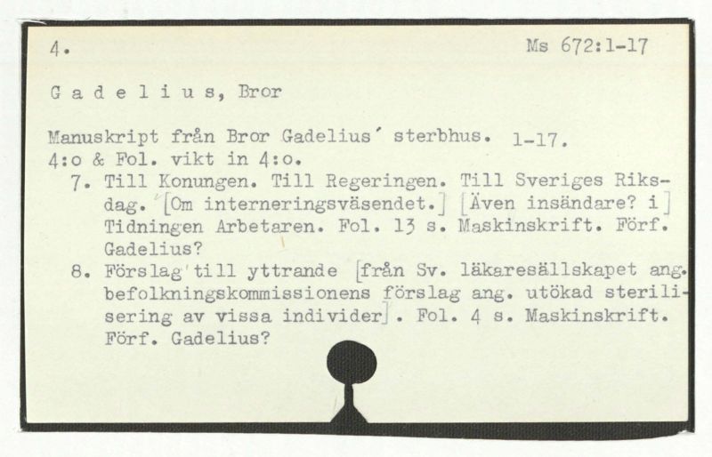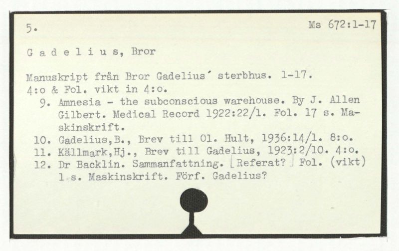 Manuskript från Bror Gadelius’ sterbhus. 1–17.