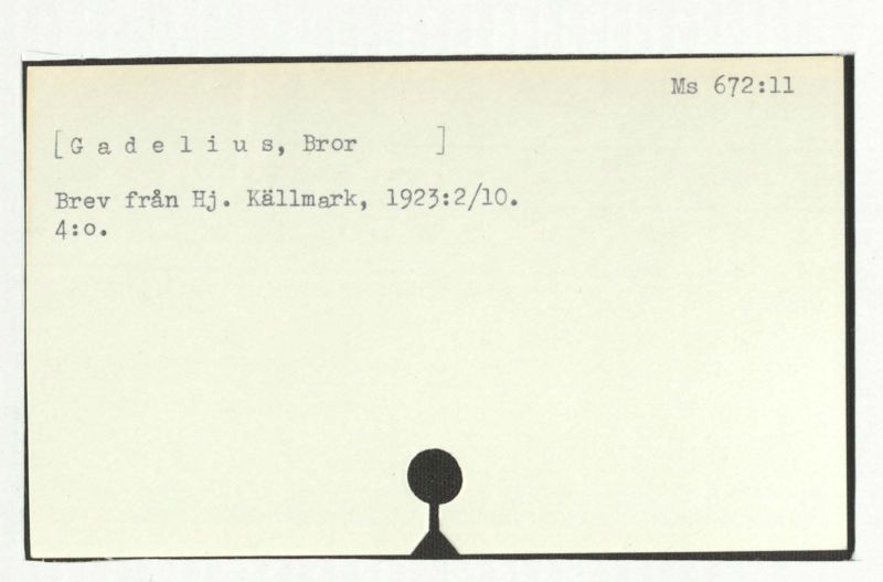 11. Källmark,Hj., Brev till Gadelius, 1923:2/10. 4:0.