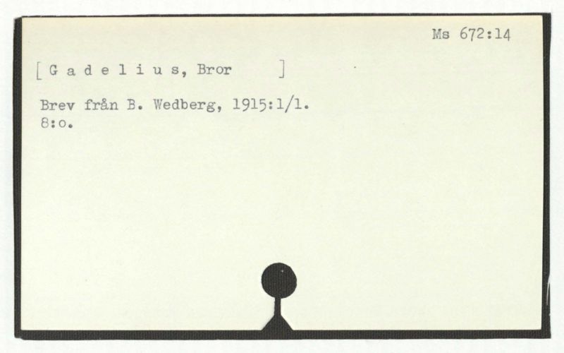 14. Wedberg,B., Brev till B. Gadelius, 1915:1/1.