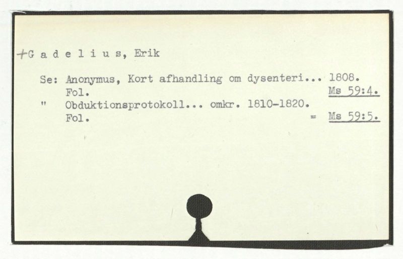 Se: Gadelius,B., Manuscript från B. G-s' sterbhus. 9.