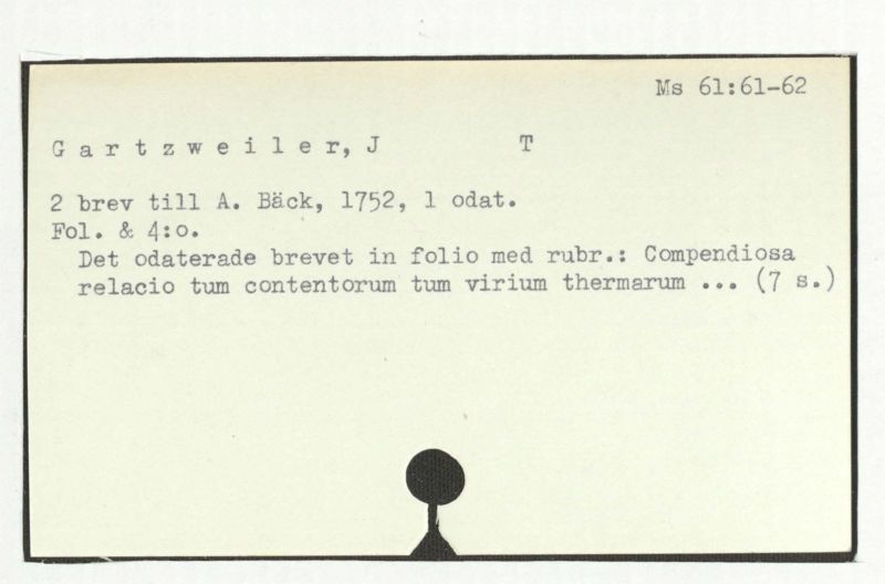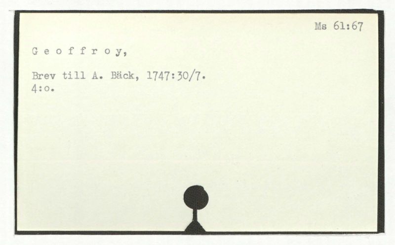 Brev till A. Bäck [3 odat. biljetter, 1759?]