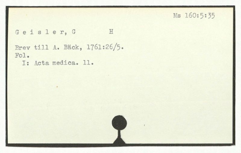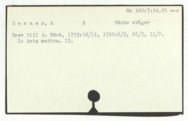 Breve till A. Bäck, 1759:18/11, 1760:6/9, 26/3, 11/2.