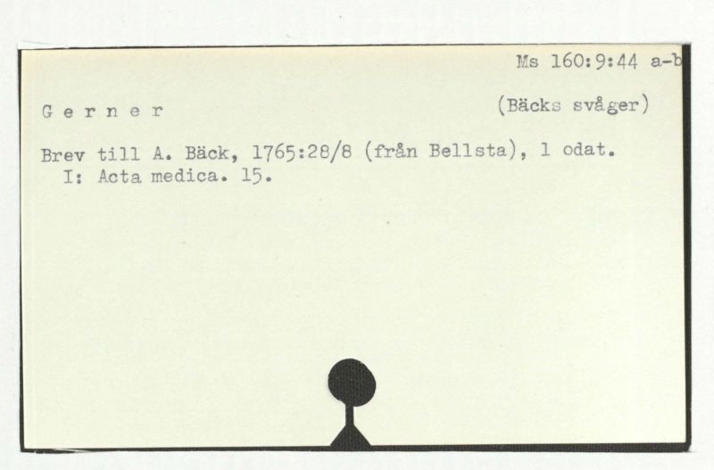 Brev till A. Bäck, 1765:28/8 (från Bellsta), 1 odat.
