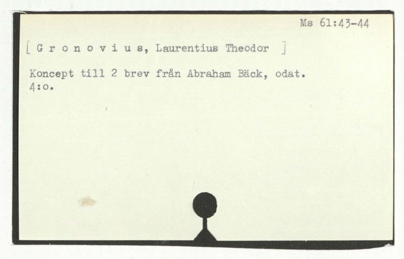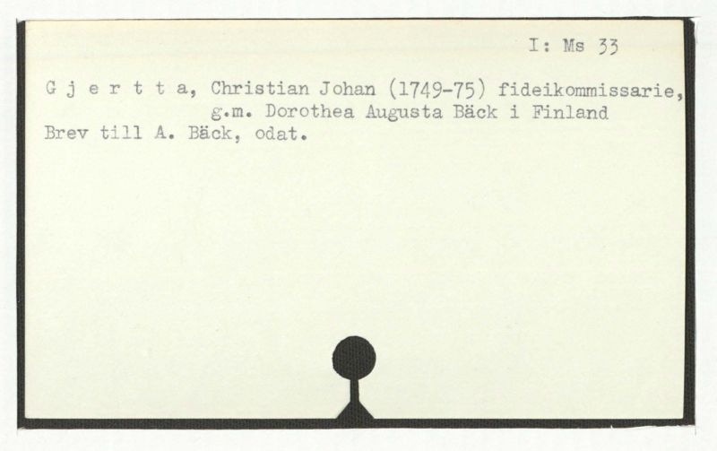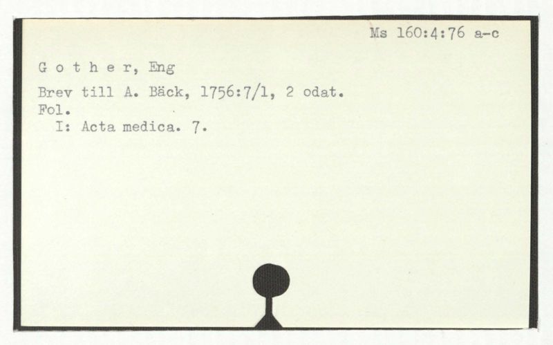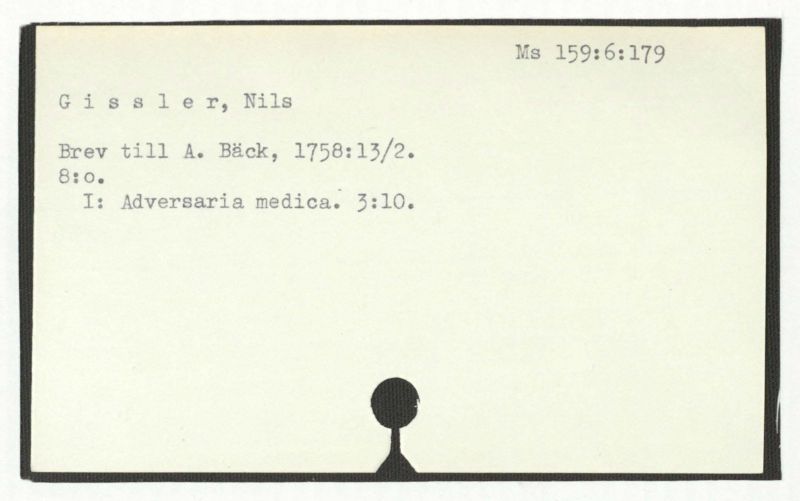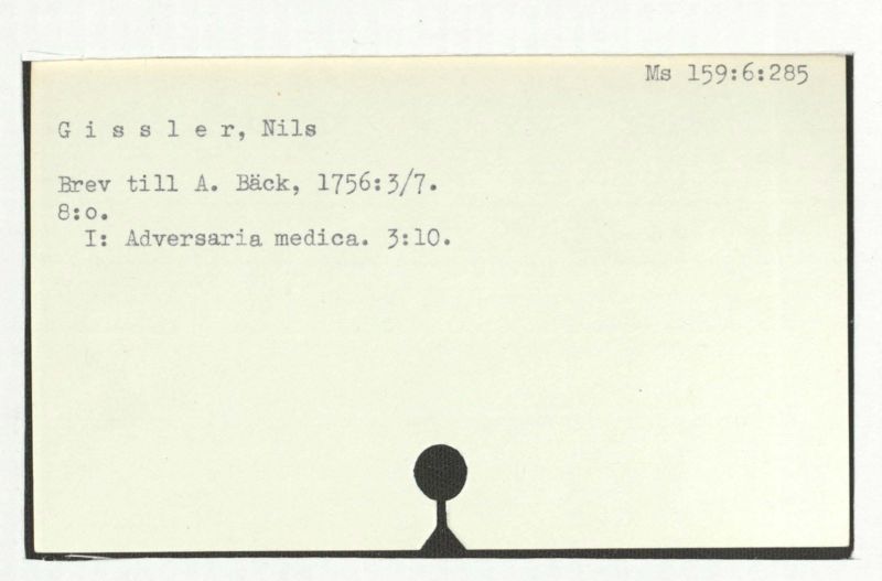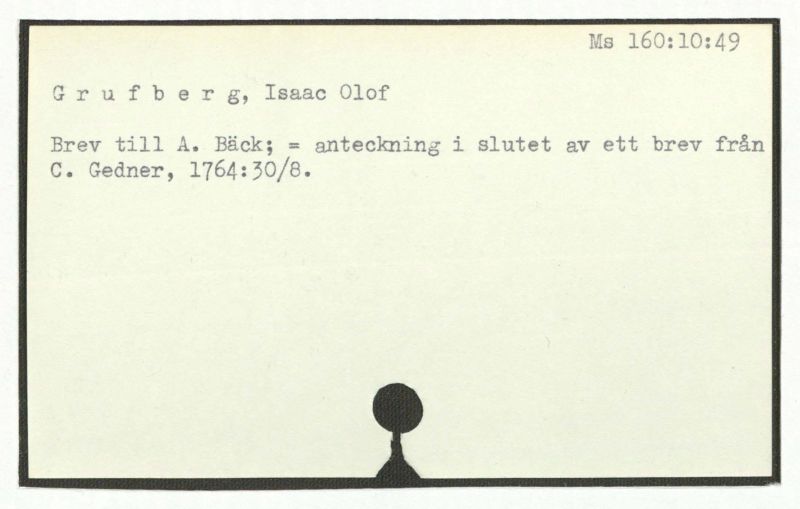 Brev till A. Bäck; = anteckning i slutet av ett brev från C. Gedner, 1764:30/8.