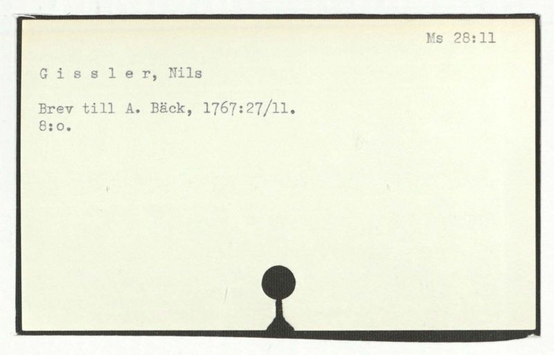 Brev till A. Bäck, 1767:27/11.