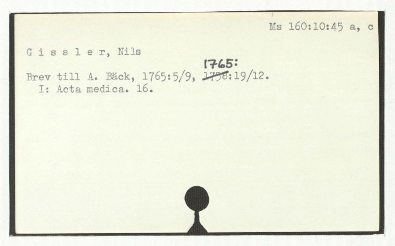 Brev till A. Bäck, 1765:5/9, 1758:19/12.