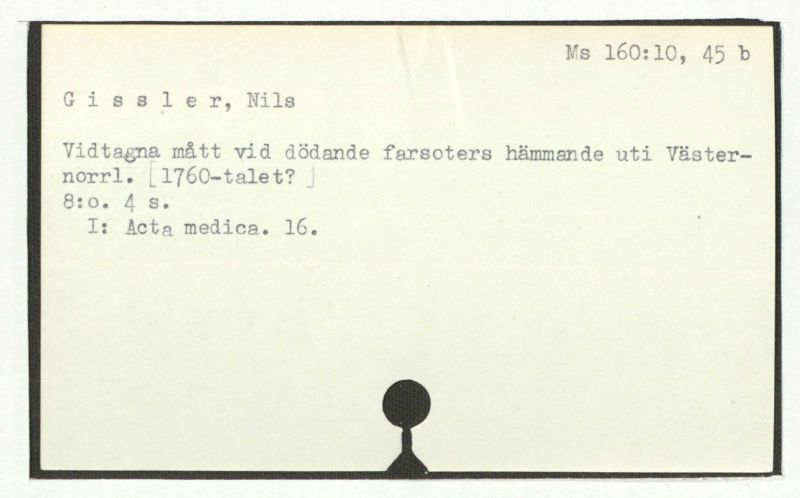 Vidtagna mått vid dödande farsoters hämmande uti Västernorrl. [1760-talet?]