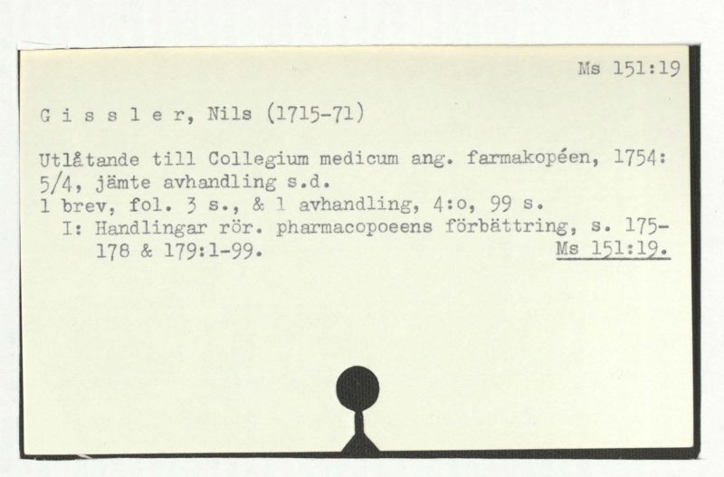 Utlåtande till Collegium medicum ang. farmakopéen, 1754: 5/4, jämte avhandling s.d.