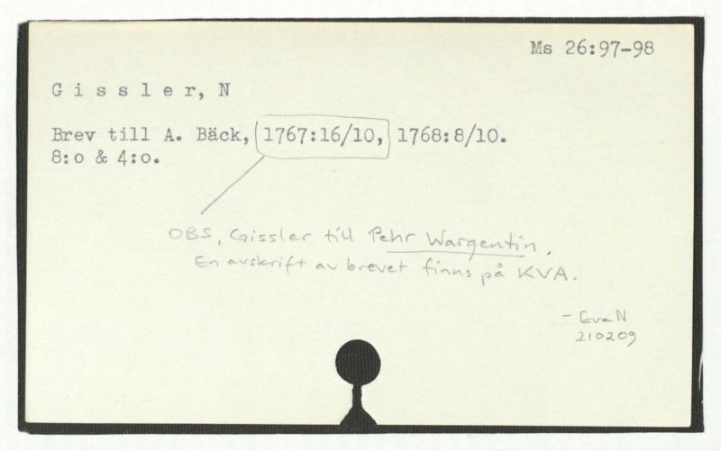 OBS, Gissler till Pehr Wargentin,