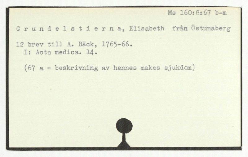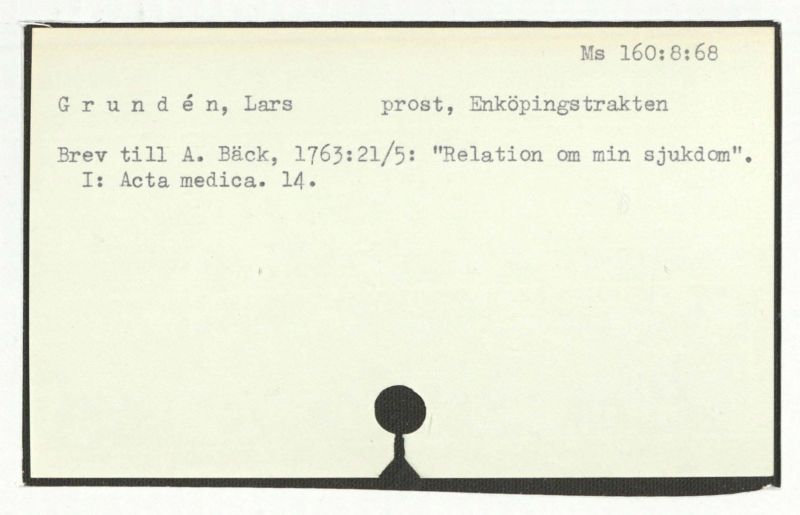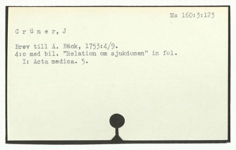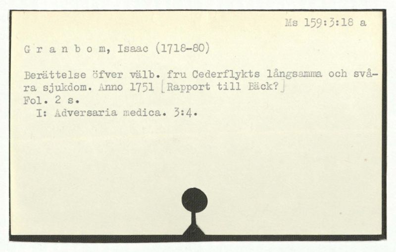 Brev till A. Bäck, 1763:21/5: "Relation om min sjukdom".