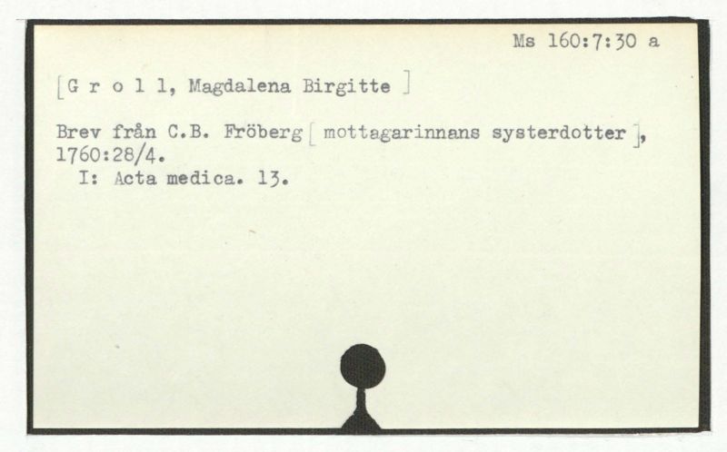 Brev från C.B. Fröberg [mottagarinnans systerdotter], 1760:28/4.