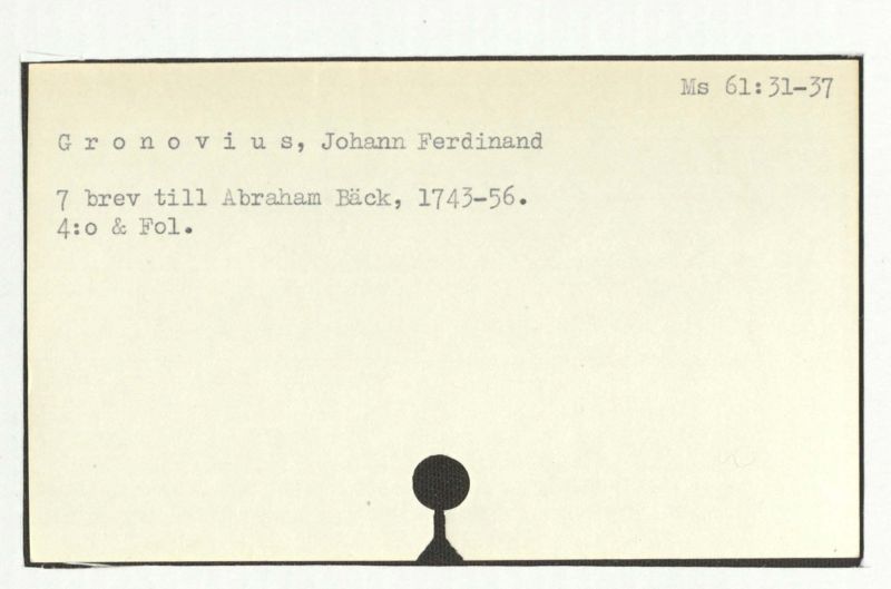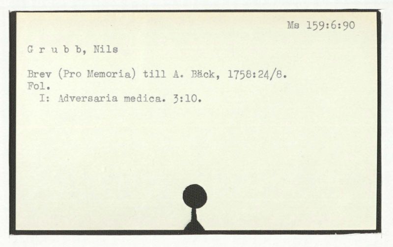 Brev till A. Bäck, 1754:19/9.