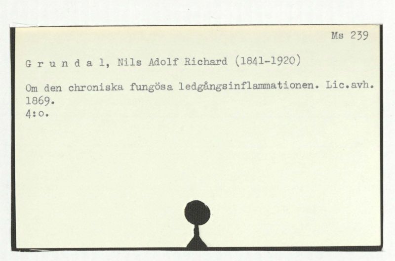 Om den chroniska fungösa ledgångsinflammationen. Lic.avh. 1869.