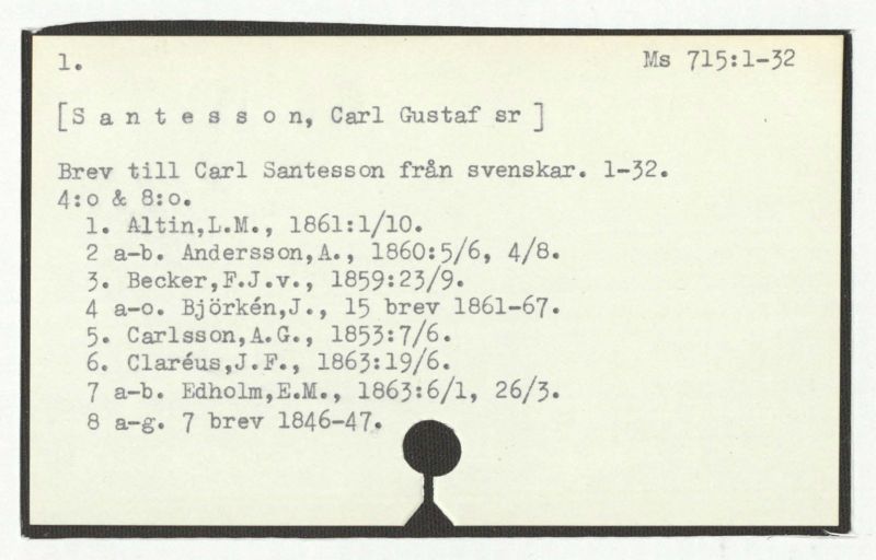 Brev till Carl Santesson från svenskar. 1-32.