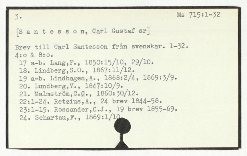 22:1-24. Retzius, A., 24 brev 1844-58.