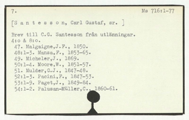 Enstaka brev till andra personer påträffade i C.G. Santessons brevsmaling.