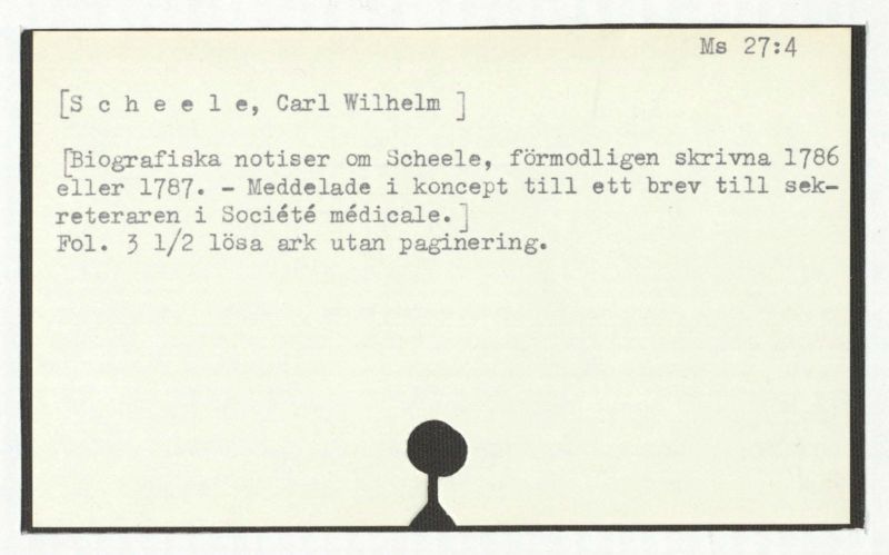 [BiografiskanotiseromScheele, förmodligen skrivna 1786 eller 1787. – Meddelade i koncept till ett brev till sekreteraren i Société médicale.]