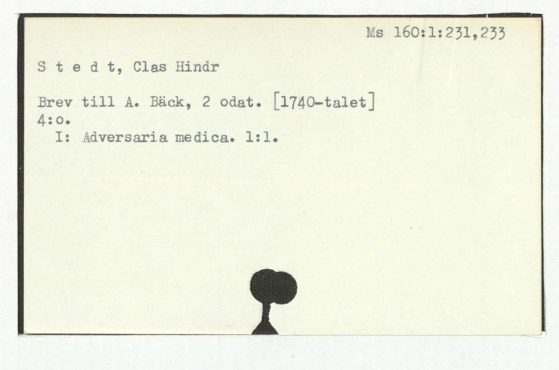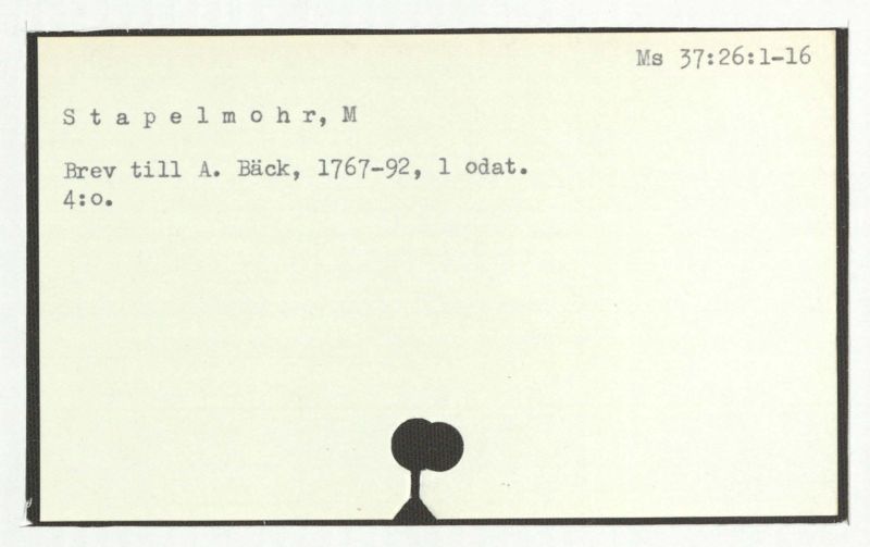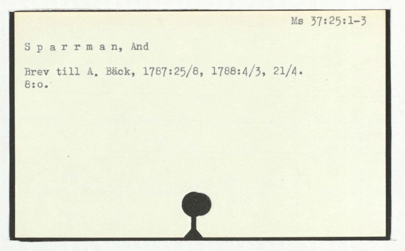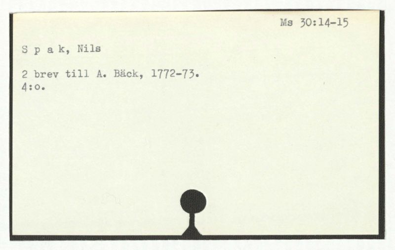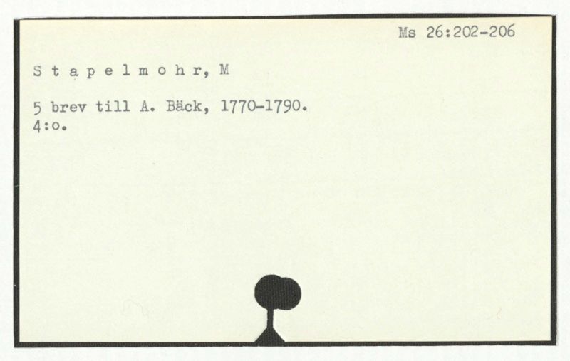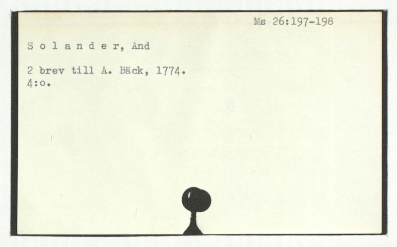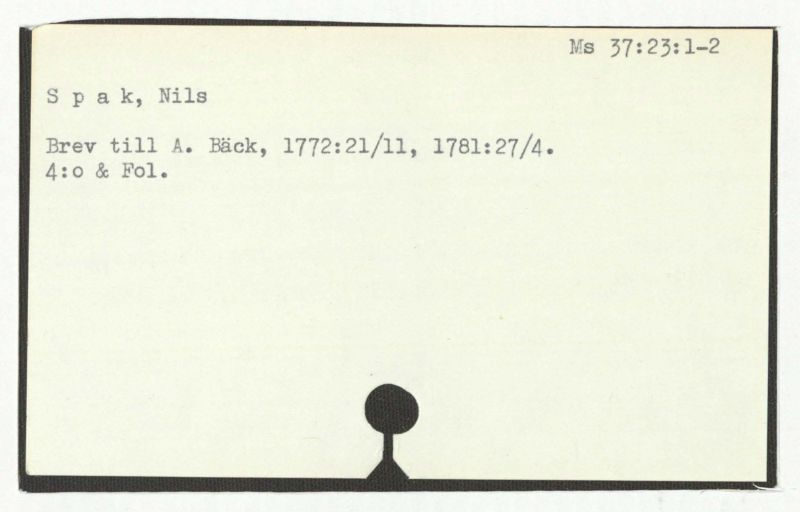 Brev till A. Bäck, 1772:21/11, 1781:27/4.