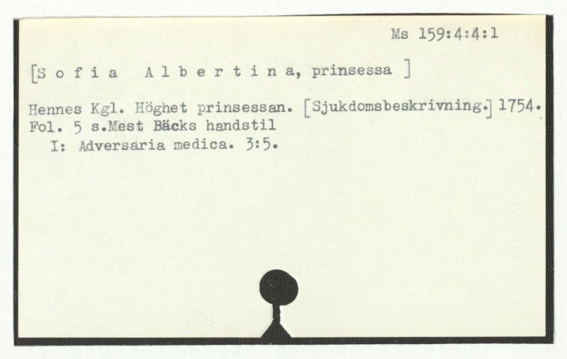 Hennes Kgl. Höghet prinsessan. [Sjukdomsbeskrivning] 1754.