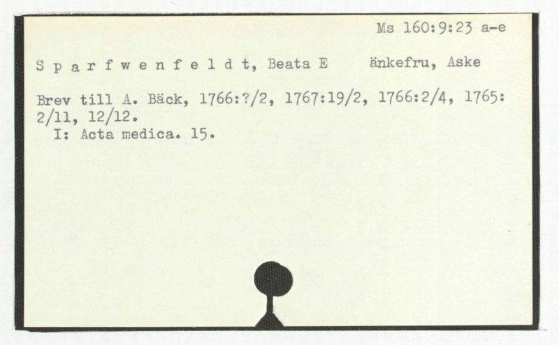 Brev till A. Bäck, 1766:?/2, 1767:19/2, 1766:2/4, 1765: 2/11, 12/12.