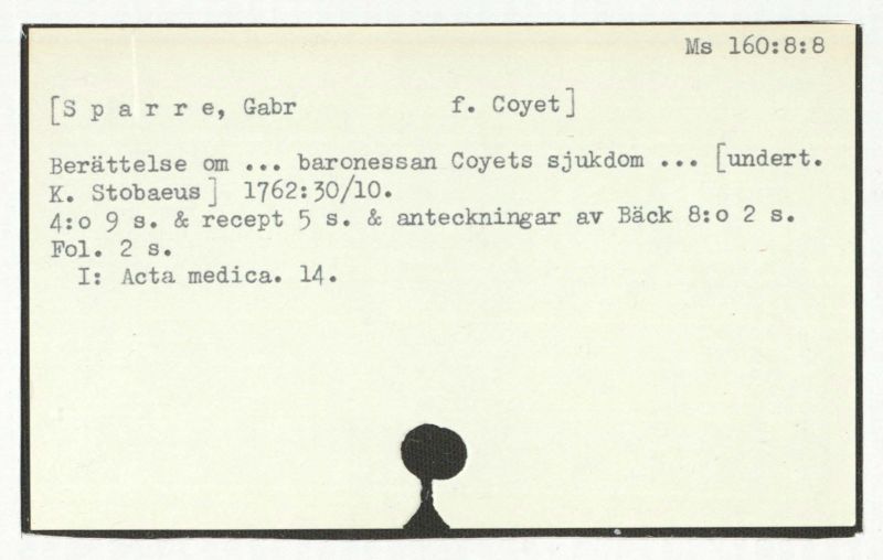 Berättelse om ... baronessan Coyets sjukdom ... [undert. K. Stobaeus] 1762:30/10.