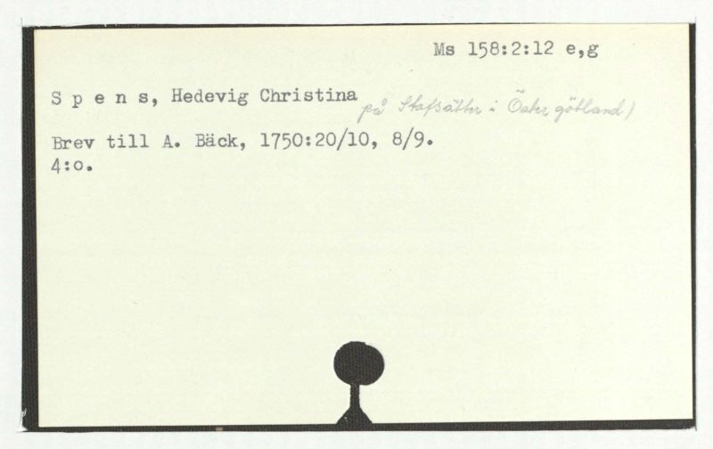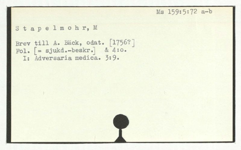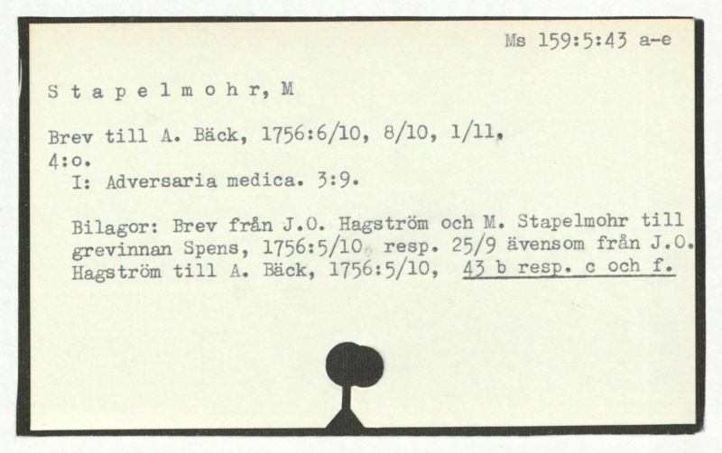 Brev till A. Bäck, 1756:27/9.