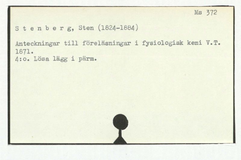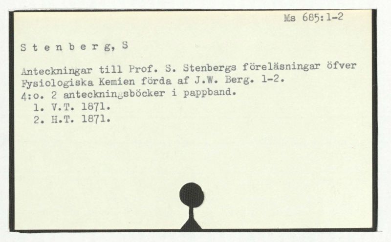 Anteckningar till Prof. S. Stenbergs föreläsningar öfver Fysiologiska Kemien fördra af J.W. Berg. 1-2.