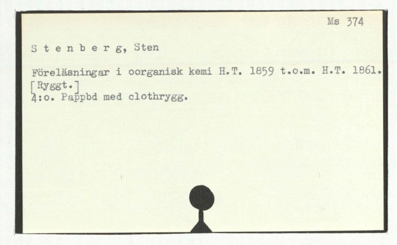 Föreläsningar i oorganisk kemi H.T. 1859 t.o.m. H.T. 1861.
