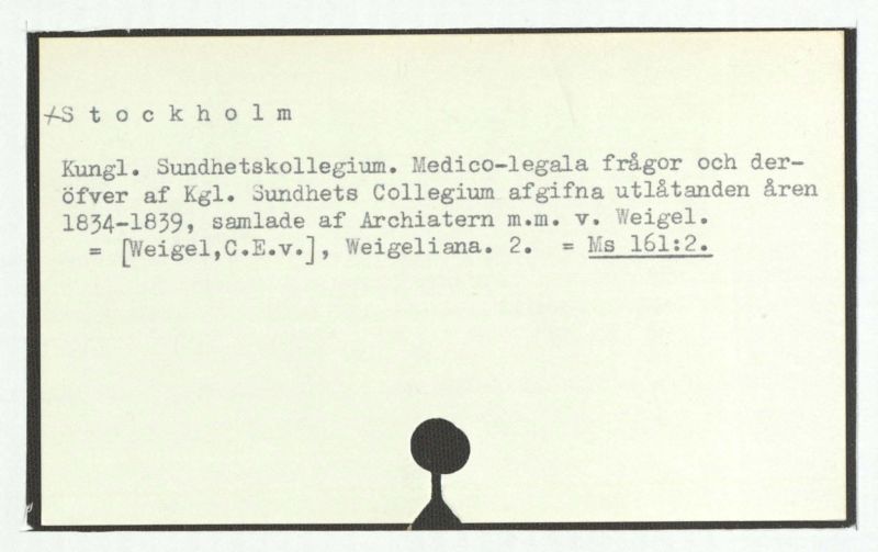 över af Kgl. Sundhets Collegium afgifna utlåtanden åren 1834-1839, samlade af Archiatern m.m. v. Weigel.