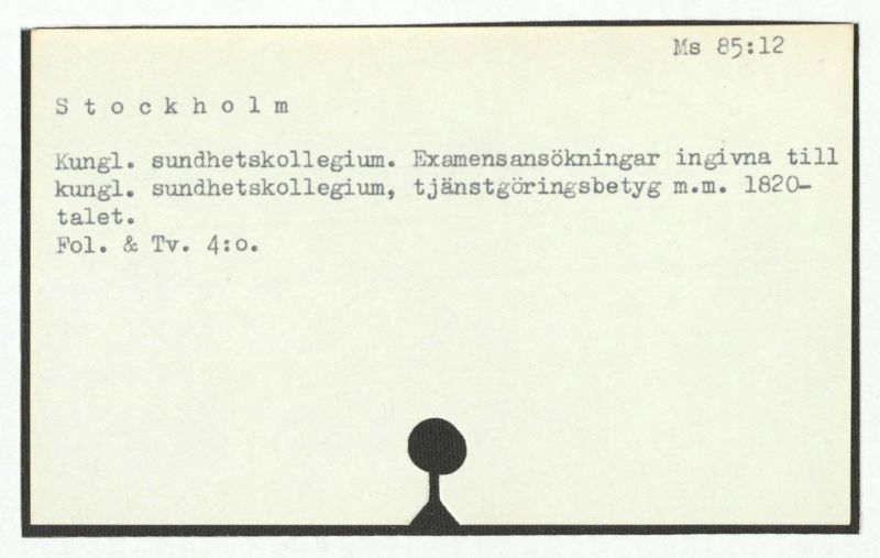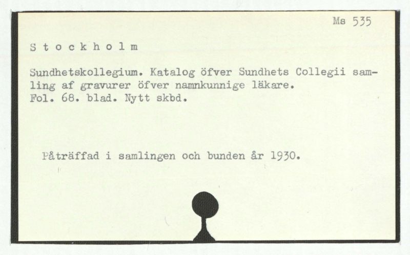 Sundhetskollegium. Katalog över Sundhets Collegii sam-