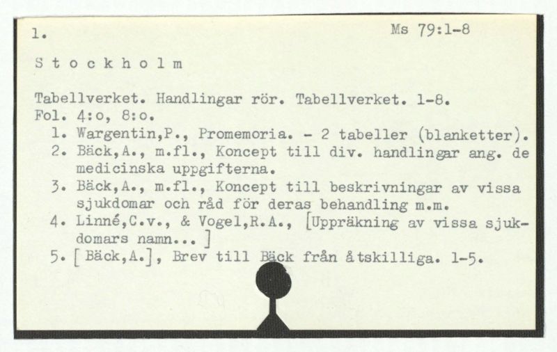 1. Wargentin,P., Promemoria. – 2 tabeller (blanketter).