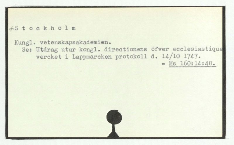Se: Utdrag utur kongl. directionens över ecclesiastique verket i Lappmarcken protocol d. 14/10 1747.