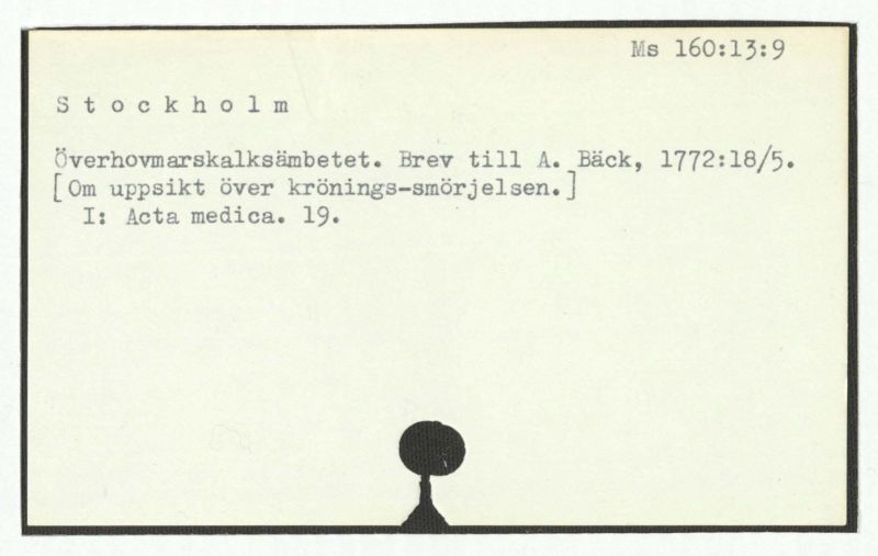 Överhovmarskalsämbetet. Brev till A. Bäck, 1772:18/5.