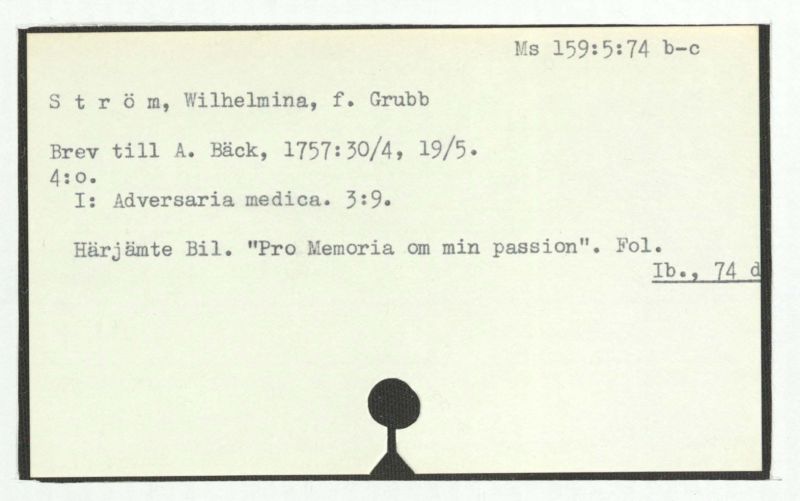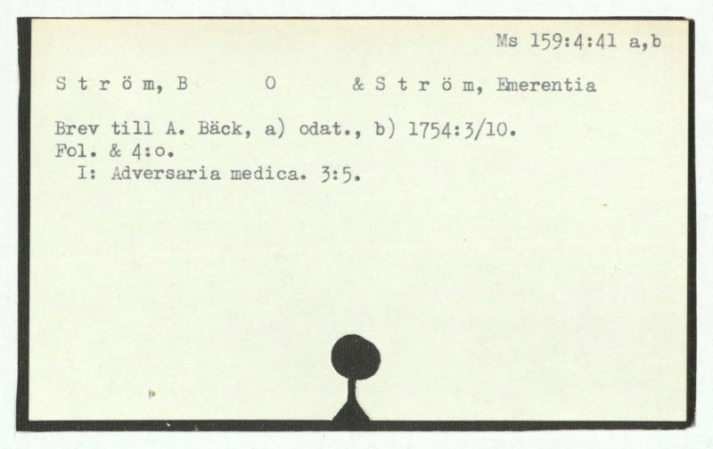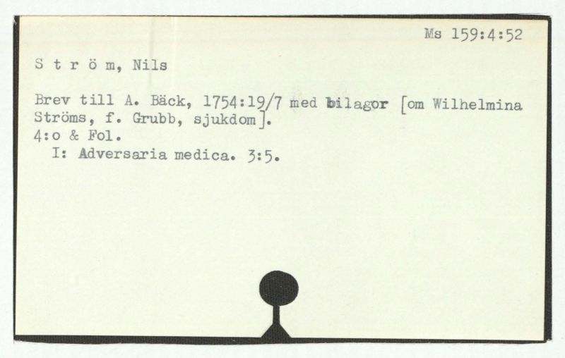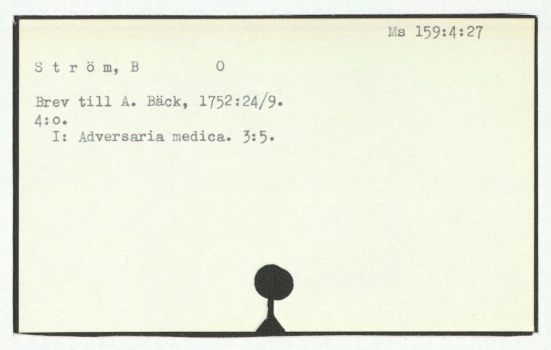 Se: Ström,N., Brev till A. Bäck, 1754. = Ms 159:4:54.