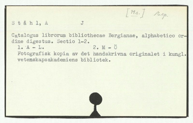 Catalogus librorum bibliothecae Bergianae, alfabetico ordine digestus. Sectio 1-2.