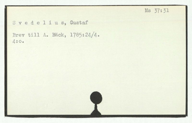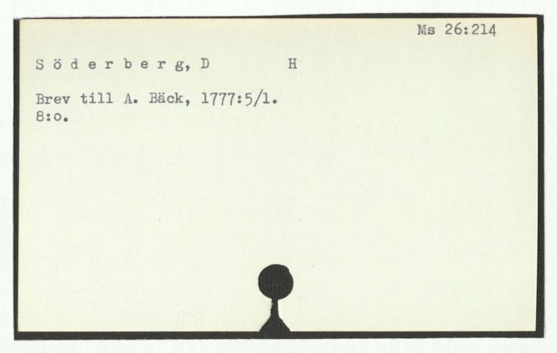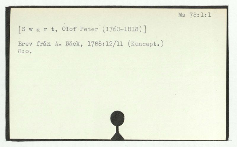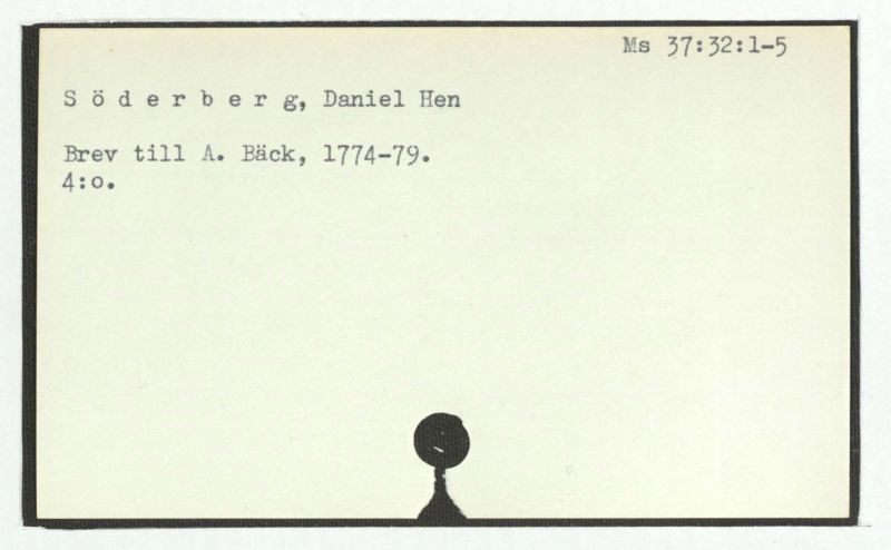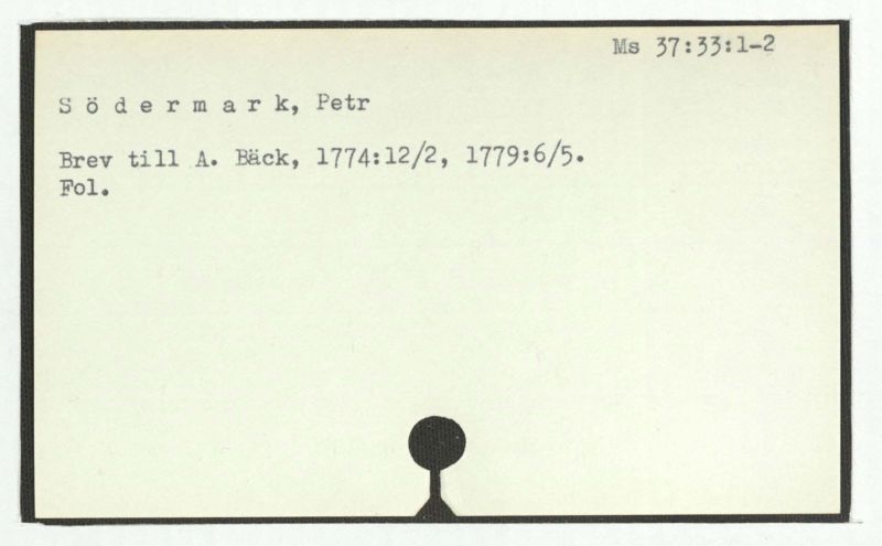 Brev till A. Bäck, 1774:12/2, 1779:6/5.