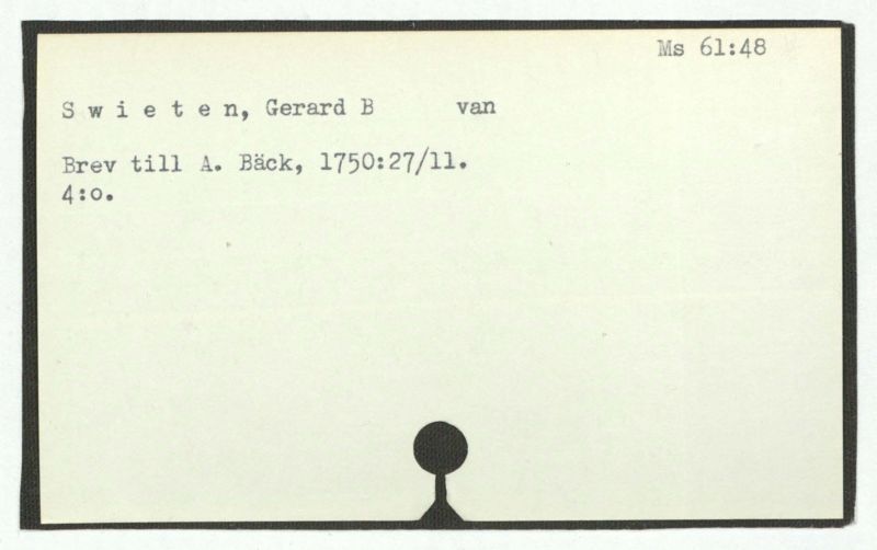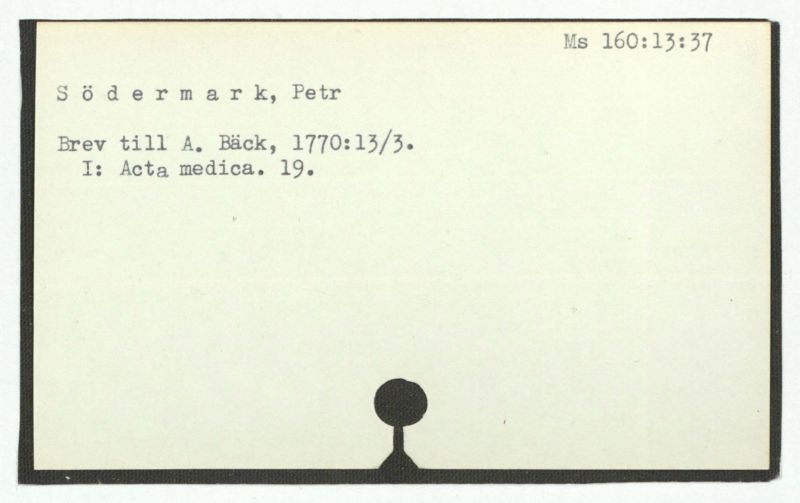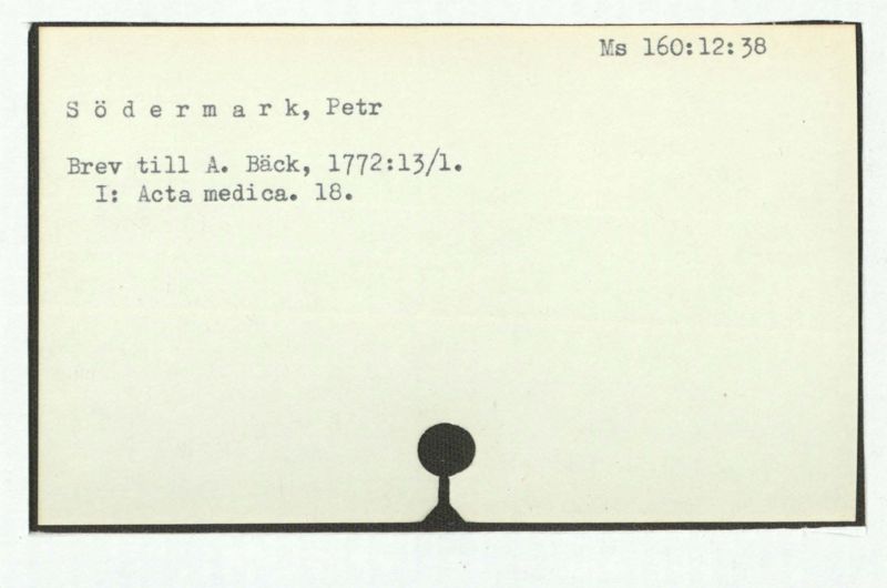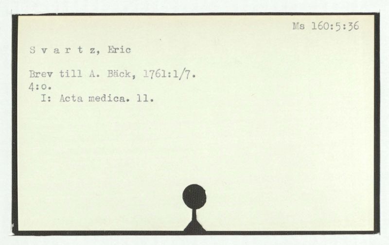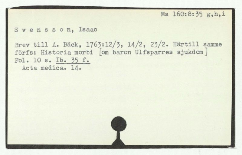 Brev till A. Bäck, 1763:12/3, 14/2, 23/2. Här till samme förfs: Historia morbi [om baron Ulfsparres sjukdom]