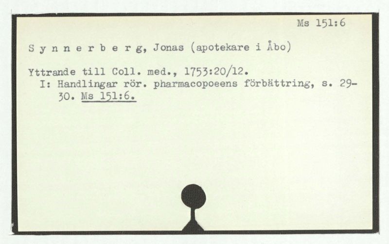 I: Handlingar rör. pharmacopeiens förbättring, s. 29-30. Ms 151:6.