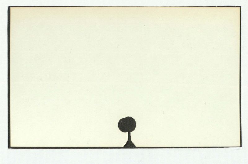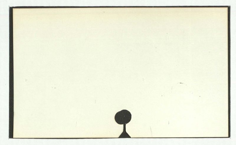 There is no text present in the image. The image consists of a black rectangular border surrounding a light beige background with a simple black silhouette at the bottom.